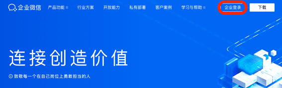 1 打开企业微信官网https://work.weixin.qq.com,点击企业登录,使用企业微信扫码登录