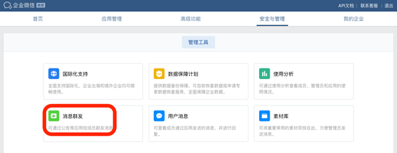 2 在安全与管理子页面,在管理工具里找到并点击消息群发